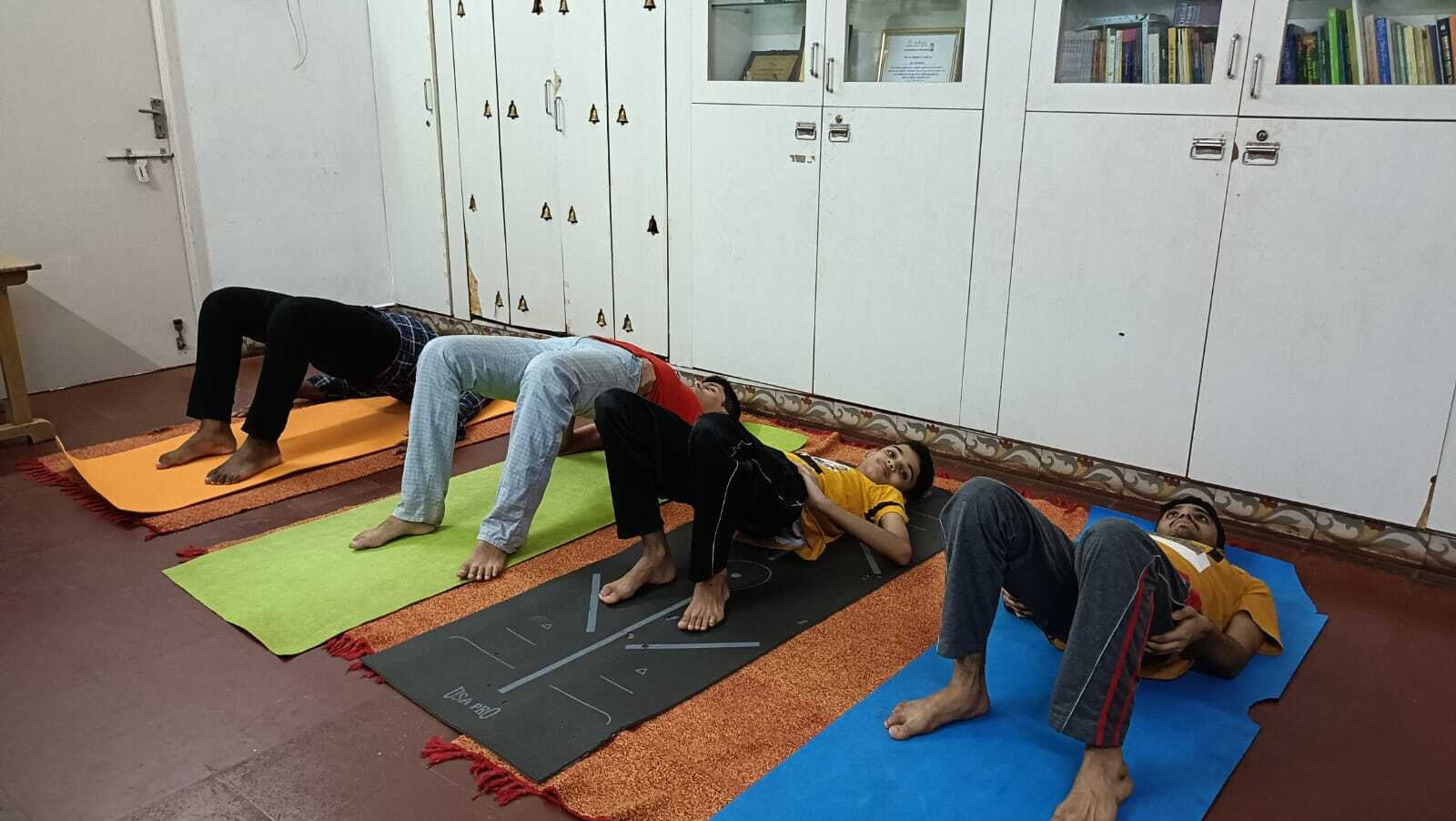 At Swabhimaan, we impart customized yoga therapy according to the individual needs of the child. To begin with, we offer yoga as one-on-one therapy for 45 minute sessions, three days a week. Sukshma vyayama, sitting, standing and lying down asanas, topsy turvy asanas are taught in this level one program.
